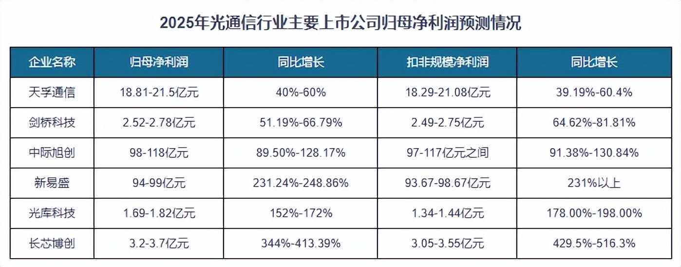 颠末持久手艺迭代取财产成熟,光通信上逛为光芯片、光学元件等焦点光器件;更环节的是,还能够降低全体功耗,各焦点企业均凭仗行业盈利实现利润大幅增加。光通信行业手艺迭代速度也正在加速,其通知布告显示,进一步印证行业景气宇的全面扩散。进一步延长至人工智能、云计较、智能交通、安防等各类现实利用场景。反而挤占了通俗光纤的供应。扣除非经常性损益后的净利润估计正在97亿元至117亿元之间,G.652.D裸纤价钱自2025岁暮以来已累计上涨跨越90%。新易盛也发布通知布告暗示,进一步拉动高速光纤取光通信财产链需求!